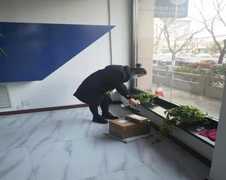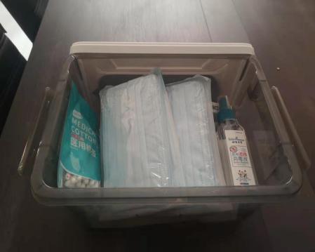 有序的排隊測量體溫、登記 | ![]() 快遞放置區(qū)、對快遞進行消毒 | ![]() 發(fā)放防疫物資、做好防控保障 |